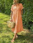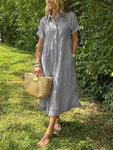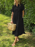 De Angela Maxi Jurk is de perfecte keuze voor elke zomerse dag. Deze jurk combineert een uniek design met een comfortabele pasvorm en stijlvolle details. Gemaakt van een zachte, ademende katoenmix die soepel langs het lichaam valt en de hele dag mooi in model blijft. De jurk heeft korte mouwen, een kraag en een rij knopen in het midden – ideaal voor een verzorgde, vrouwelijke look met een moeiteloos karakter. De licht getailleerde taille en zwierige rok zorgen voor een flatterende uitstraling.